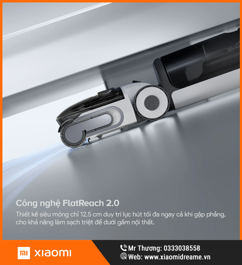 Điểm hay của FlatReach 2.0 là không chỉ giúp máy “luồn vào được”, mà còn vẫn duy trì hiệu quả làm sạch ở tư thế thấp. Điều này rất quan trọng vì nhiều khu vực gầm nội thất thường tích tụ tóc, bụi mịn, vụn thức ăn hoặc lông thú cưng trong thời gian dài. Khi có thể làm sạch thường xuyên dưới các bề mặt thấp, không gian sống sẽ vệ sinh hơn, giảm mùi bụi tích tụ và giúp việc tổng vệ sinh nhà cửa trở nên nhẹ nhàng hơn nhiều.