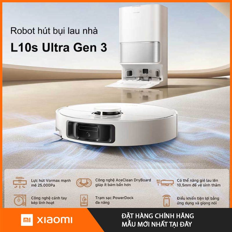Dreame L10s Ultra Gen 3 là phiên bản robot hút bụi lau sàn thông minh thế hệ mới nhất từ thương hiệu Dreame – nổi tiếng với các dòng thiết bị dọn dẹp cao cấp. Sản phẩm được mệnh danh là “người giúp việc robot” nhờ khả năng tự hút bụi – tự lau sàn – tự giặt giẻ – tự đổ rác – tự pha nước lau sàn và thậm chí tự sấy khô hệ thống sau khi vệ sinh.