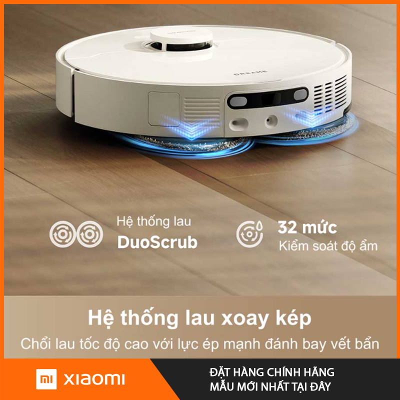 Một cải tiến nổi bật trên Dreame L10s Ultra Gen 3 chính là hệ thống DuoScrub – công nghệ lau quay kép kết hợp điều chỉnh độ ẩm tự động với 32 cấp độ. Khác với robot lau dạng kéo thông thường, DuoScrub dùng 2 đĩa lau xoay ngược chiều, tạo lực ép và độ chà mạnh giúp đánh bật vết bẩn bám sàn như dầu mỡ, nước mắm, cà phê…
