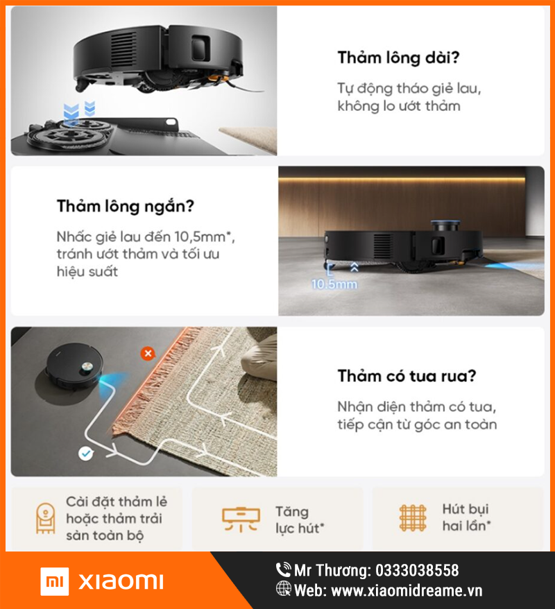 | Kích thước robot | 350 x 350 x 79,5 mm (thu VersaLift)350 x 350 x 102,8 mm (nâng VersaLift) |