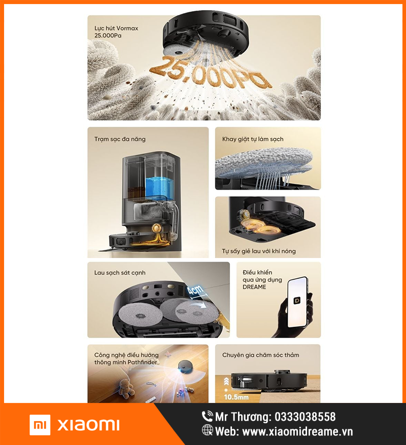 Với các công nghệ nổi bật như Vormax 25.000Pa, MopExtend RoboSwing, DuoScrub, PowerDock, Pathfinder, 3DAdapt và Matter, Dreame D30 Ultra xứng đáng là giải pháp dọn dẹp toàn diện cho gia đình hiện đại, đặc biệt là những không gian có thảm, nuôi thú cưng hoặc cần tối ưu thời gian làm việc nhà.