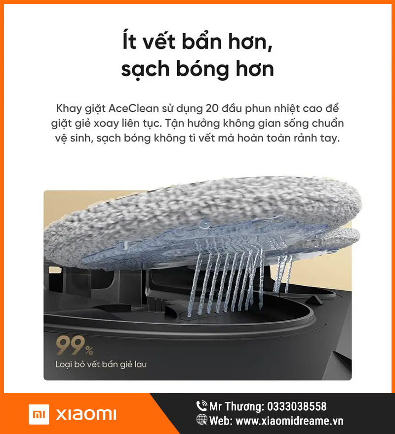 Theo thông số sản phẩm, hệ thống này hỗ trợ mở rộng giẻ lau tới 4cm, từ đó tăng đáng kể độ phủ khi vệ sinh sàn. Đây là tính năng đặc biệt hữu ích với những gia đình có nhiều nội thất hoặc yêu cầu cao về độ sạch ở khu vực mép sàn, nơi bụi bẩn thường dễ bị bỏ sót.