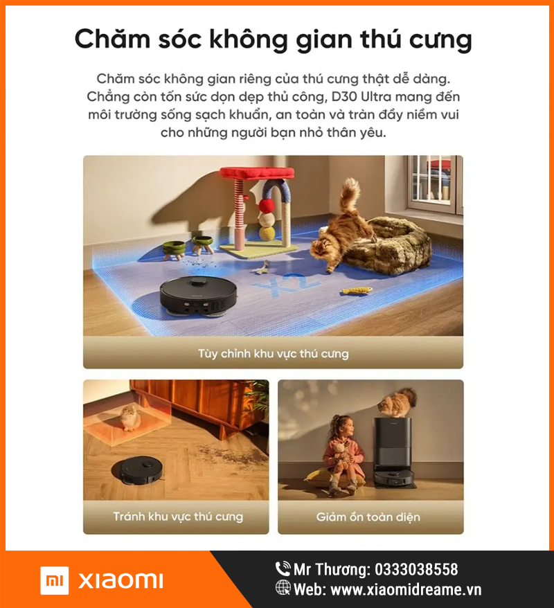 Dreame D30 Ultra – Bản Quốc Tế là lựa chọn phù hợp cho các gia đình nuôi chó mèo nhờ khả năng xử lý tốt lông thú cưng, bụi bẩn và tóc rụng trong sinh hoạt hằng ngày. Với lực hút mạnh, cơ chế lau linh hoạt và khả năng làm sạch sát cạnh, robot hỗ trợ giữ cho sàn nhà sạch sẽ và dễ chịu hơn mỗi ngày.