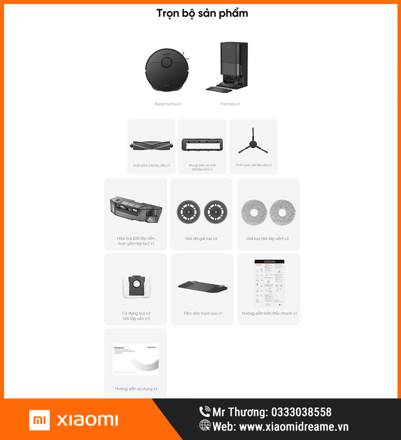 | Kích thước robot hút bụi | 350mm x 350mm x 97mm |