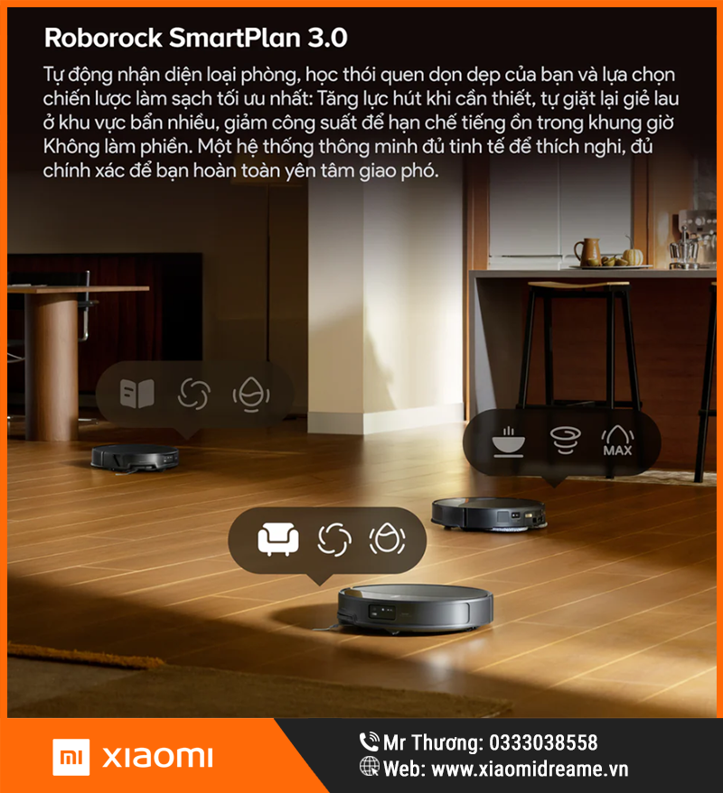 Tối ưu chạy theo phòng: phòng khách hút mạnh, bếp lau kỹ, phòng ngủ lau nhẹ.