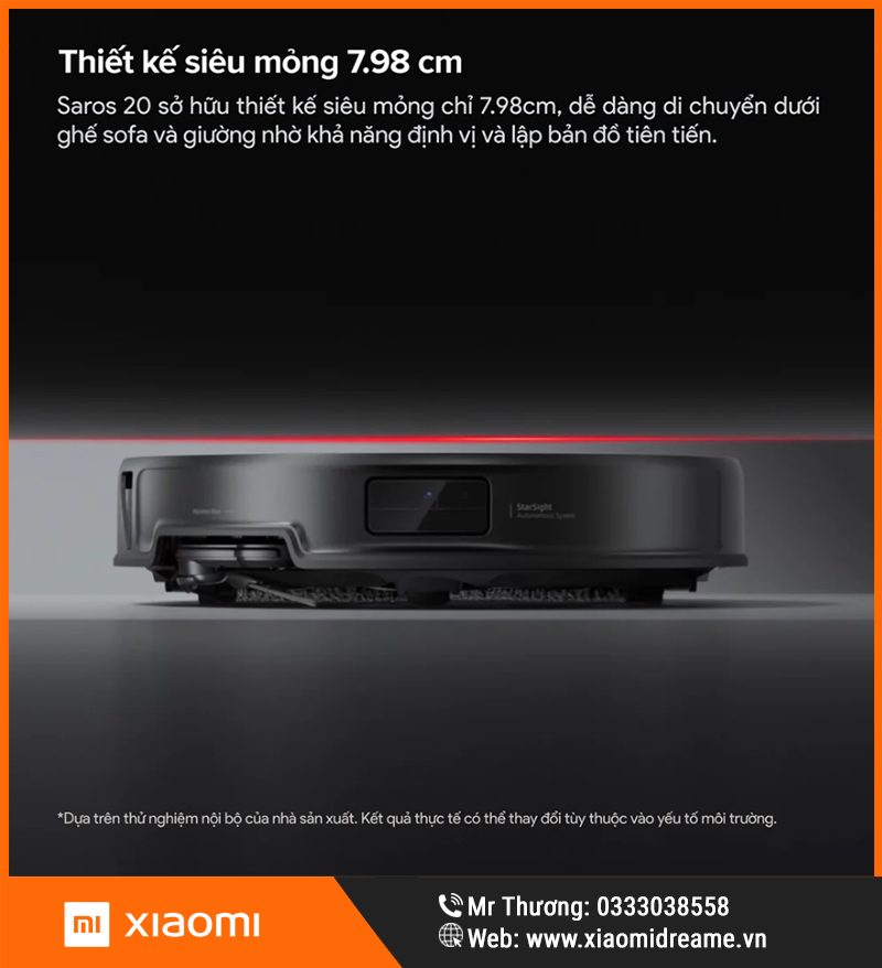 Roborock Saros 20 (Chính Hãng) là lựa chọn phù hợp nếu bạn muốn một robot “đáng tin để giao việc” thay vì mua về rồi phải canh. Thân siêu mỏng 7,98cm giúp sạch gầm—phần nhiều nhà Việt hay bỏ sót. Lực hút 35.000Pa xử lý tốt cả bụi mịn và rác thô, đặc biệt trên thảm. Hệ lau xoay kép 200 vòng/phút kết hợp trạm giặt/vệ sinh nước nóng 100°C và sấy nóng 55°C giúp lau sạch bền, ít mùi. Thêm các lớp thông minh như StarSight 2.0, SmartPlan 3.0 và nhận diện vật cản tốt, Saros 20 phù hợp với gia đình bận rộn, nhà có thảm và nhà nuôi thú cưng.
